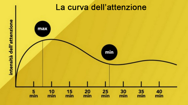 parlato. Per alcuni la curva di attenzione decresce dopo 2-3 minuti,
