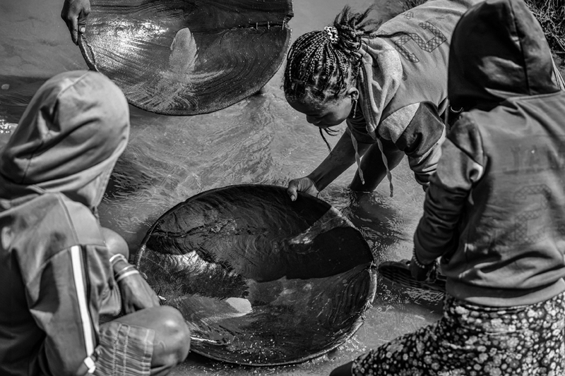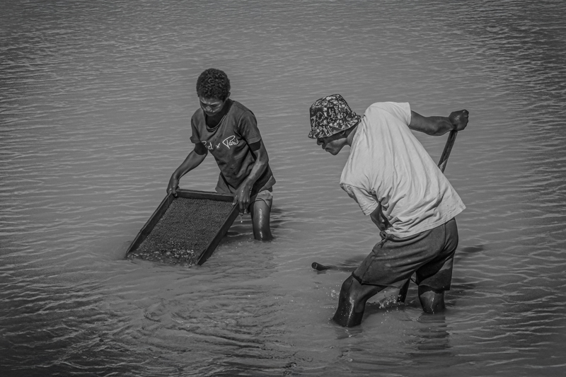 superficie. La terra viene poi setacciata nel fiume per individuare